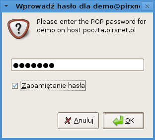 Przy pierwszym odbieraniu poczty serwer zapyta o hasło, które mu podajemy.