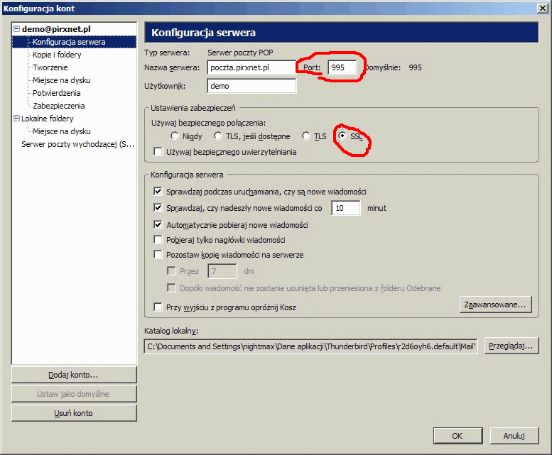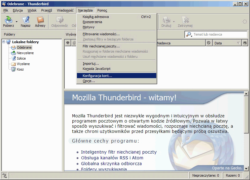 Następnie musimy zmodyfikować jeszcze tylko kilka domyślnych ustawień Thunderbirda.